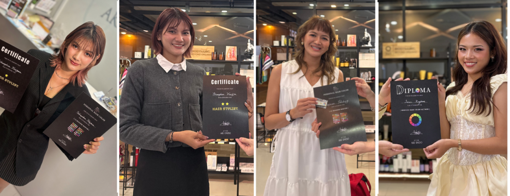 Stylists wearing the official badge are certified Personal Color Analysts at AKIENDO, qualified to design colors and styles that enhance each client’s individuality.